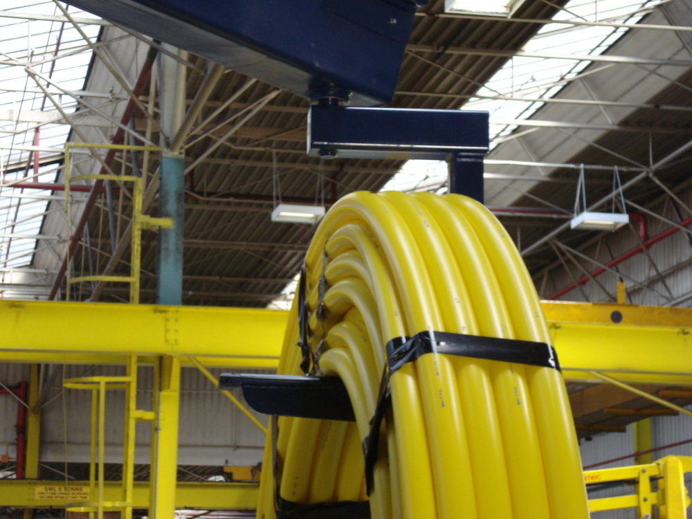 These machines can be specified for operation directly on the end of an extrusion line, where coiling rate is matched to the extrusion line speed, or they can be specified to operate in an off-line system where the coil production rate is independent of the extrusion line and can typically reach between 75 to 150m/min, enabling one automatic coiler to handle the pipe output from between two to four extrusion lines. The additional benefits of PCD's Off-line Coiling System are;