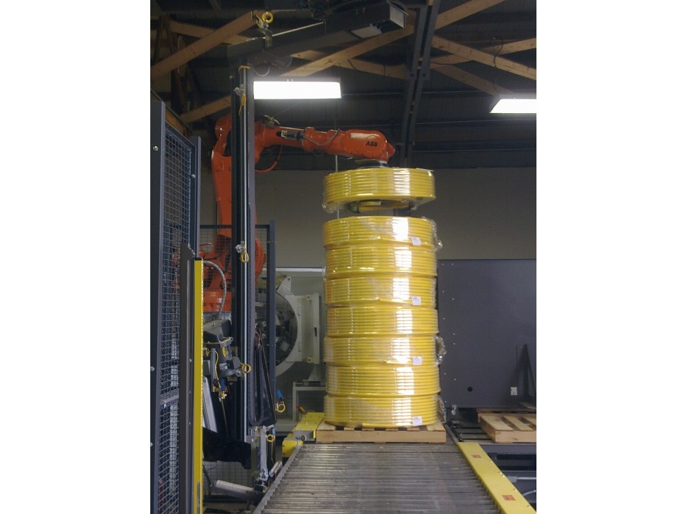 Our automatic coiling solutions offer an exceptionally efficient method of producing finished coils. These machines are available in single or twin head format, with a choice of coil packaging method; LLDPE stretch film or polypropylene/PET straps, allowing the optimum machine configuration to be selected for each application. Some of the benefits of our automatic coilers are;